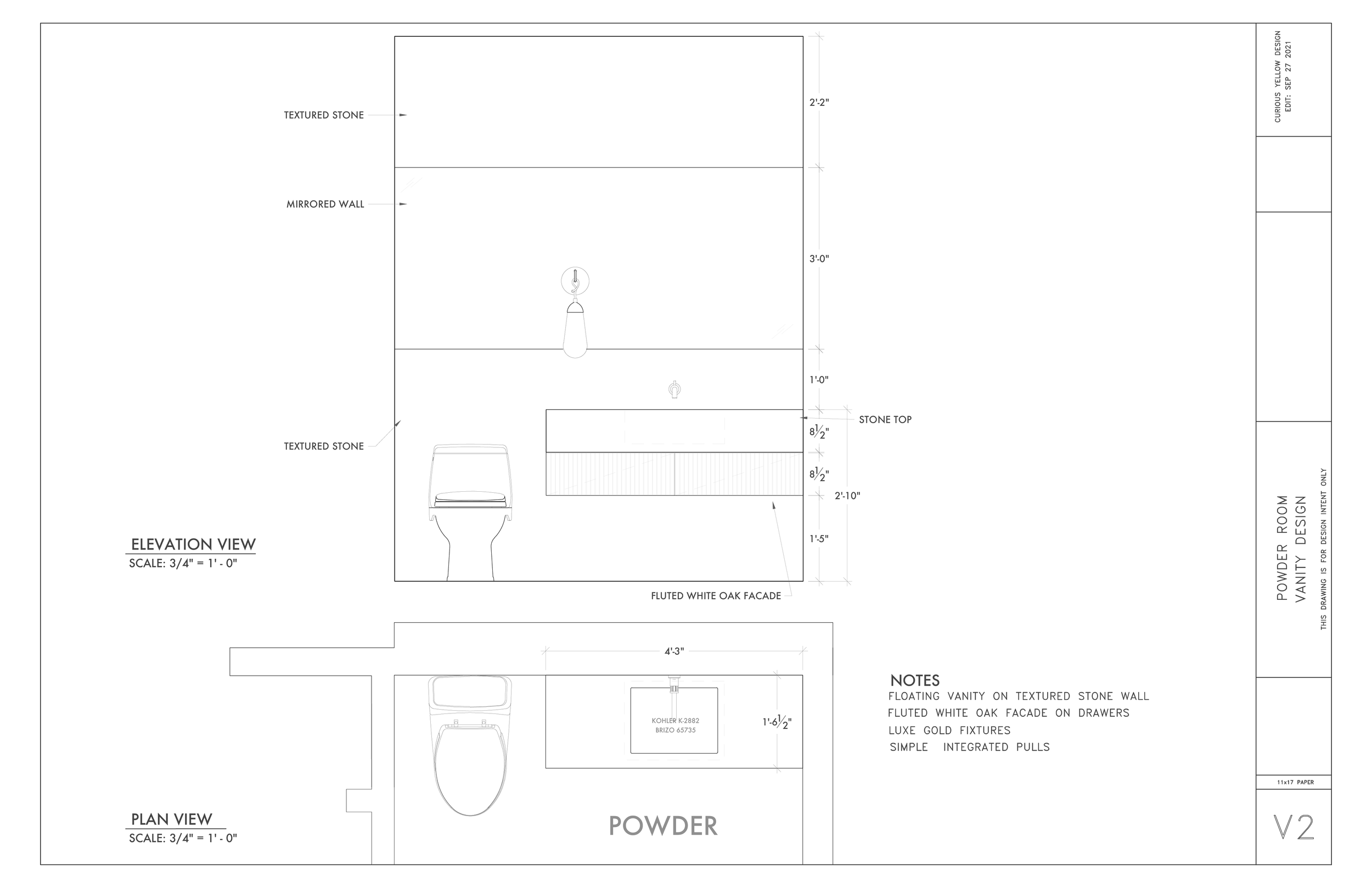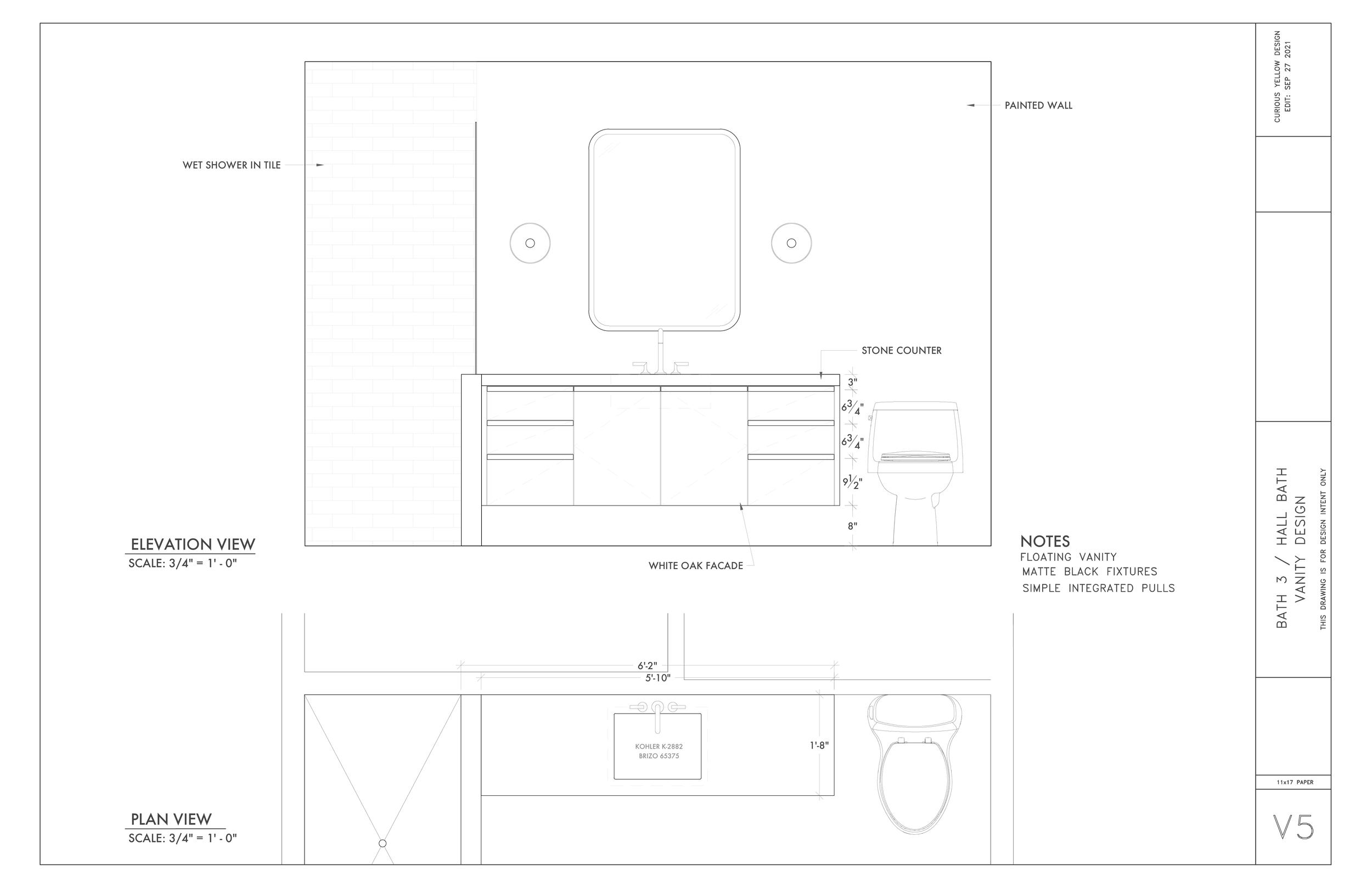 Early Stage Primary Vanity Drawing by Lauren Baker